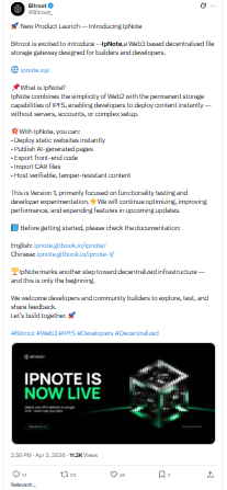 Bitroot का IpNote Launch, Web3 स्टोरेज में नया बदलाव