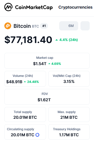 बिटकॉइन ने $76,000 का स्तर पार कर लिया, जो फरवरी के बाद इसका सबसे ऊंचा स्तर माना जा रहा है। वहीं इथेरियम भी $2,350 के आसपास मजबूती से ट्रेड कर रहा है। कुल मिलाकर, ग्लोबल क्रिप्टो मार्केट कैप लगभग 4.1% बढ़कर $2.54 ट्रिलियन तक पहुंच गया है। यह संकेत देता है कि निवेशक फिर से जोखिम लेने के मूड में लौट रहे हैं।