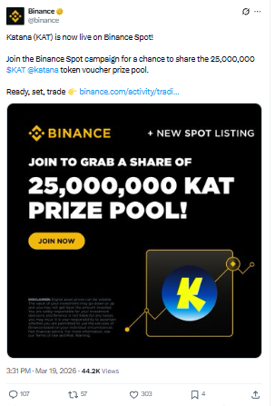 KAT listing के साथ Binance ने एक बड़ा Spot trading campaign भी शुरू किया है। इस campaign के तहत users 25,000,000 KAT token vouchers के prize pool में हिस्सा ले सकते हैं।
