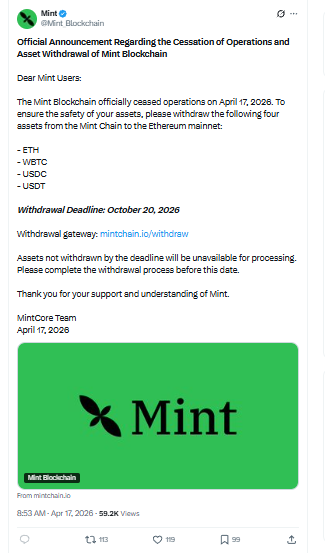 Mint Blockchain Shutdown, एसेट्स निकालने की अंतिम तारीख जारी