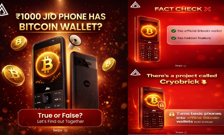 सोशल मीडिया पर कई वीडियो और पोस्ट में दिखाया गया कि Reliance Jio के सस्ते Jio Phone में एक छिपा हुआ Bitcoin wallet मौजूद है। इन वीडियो में फोन के मेन्यू में जाकर wallet बनाने और seed phrase दिखाने जैसे दृश्य दिखाए गए, जिससे लोगों को लगा कि यह Jio का आधिकारिक फीचर है।