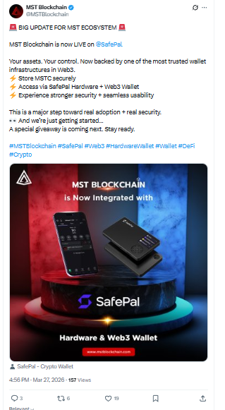 इस integration के बाद users अब $MSTC और अन्य MST assets को SafePal के mobile, Web3 और hardware wallets पर आसानी से store, send और receive कर सकते हैं। यह partnership MST ecosystem के लिए adoption और security दोनों को मजबूत करने की दिशा में बड़ा कदम मानी जा रही है।