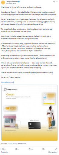 यह कदम सिर्फ एक नया फीचर नहीं, बल्कि Web3 को वास्तविक जीवन में इस्तेमाल करने की दिशा में बड़ा बदलाव माना जा रहा है। Omart के जरिए Omega Network अपने इकोसिस्टम को mining और wallet से आगे बढ़ाकर real-world utility तक ले जा रहा है।
