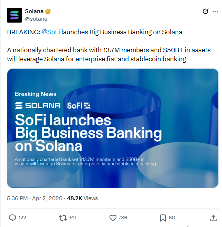 SoFi ने Solana पर Big Business Banking लॉन्च की