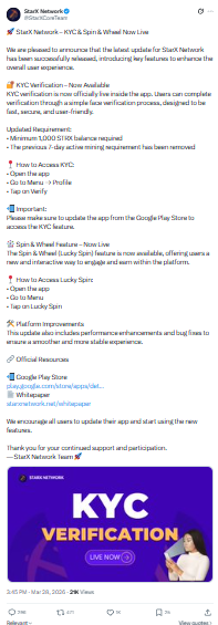 StarX Network KYC Verification और Lucky Spin फीचर हुआ लाइव