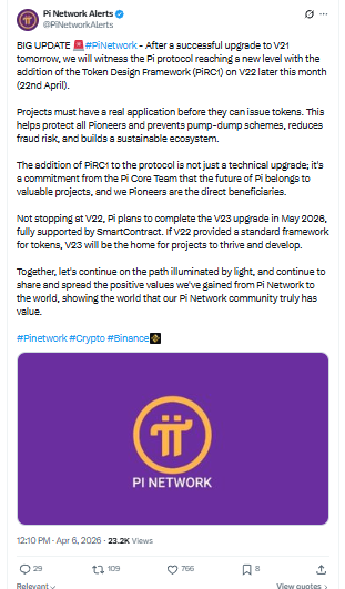 Pi Network ने अपने मेननेट को अगले स्तर पर ले जाने के लिए एक बड़ा और स्पष्ट अपग्रेड रोडमैप पेश किया है। 3 अप्रैल 2026 को Pi Network Alerts द्वारा साझा किए गए अपडेट के अनुसार, नेटवर्क अब तीन महत्वपूर्ण चरणों V21, V22 और V23 के जरिए तेजी से विकसित हो रहा है।